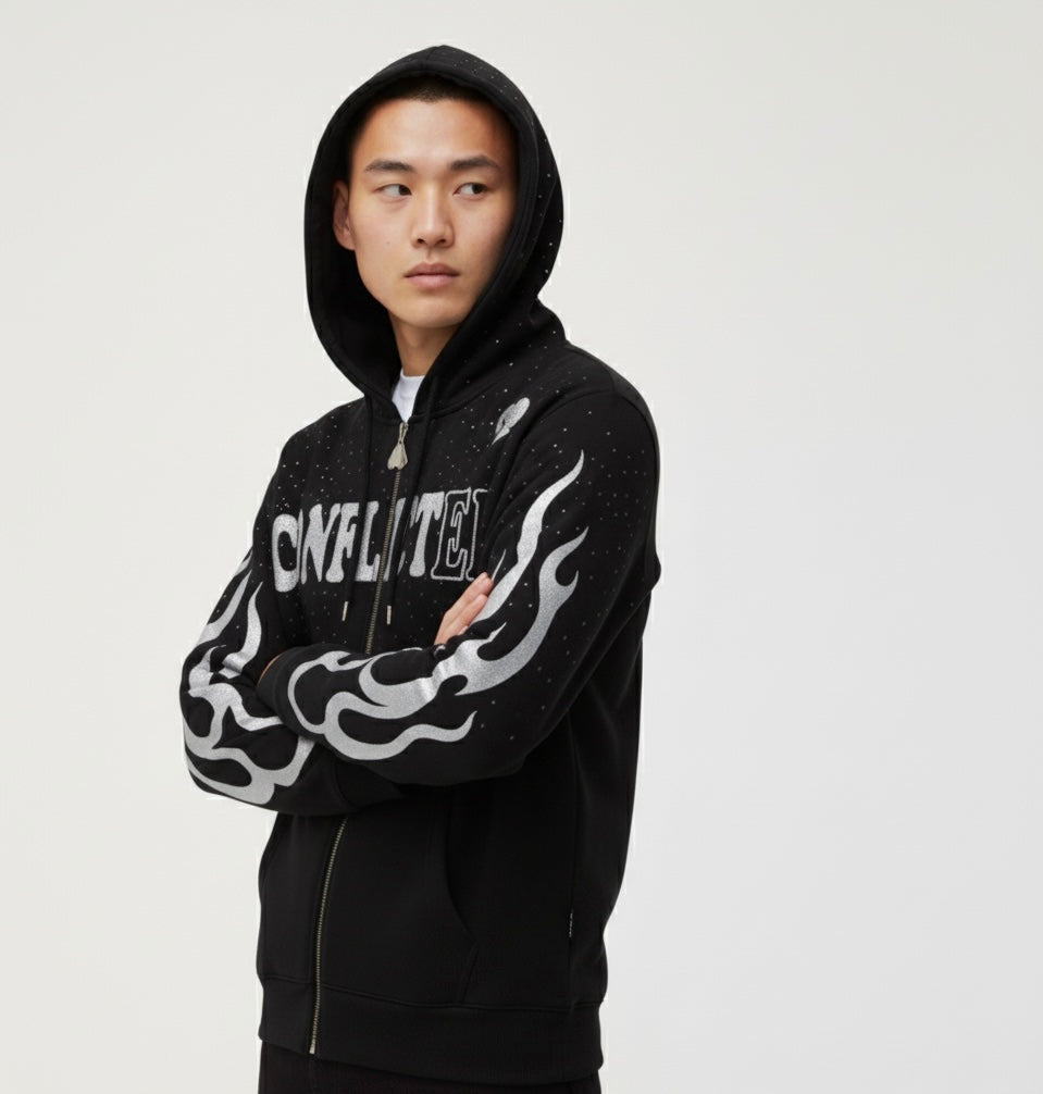 Black Rhinestone And Flame Jacket